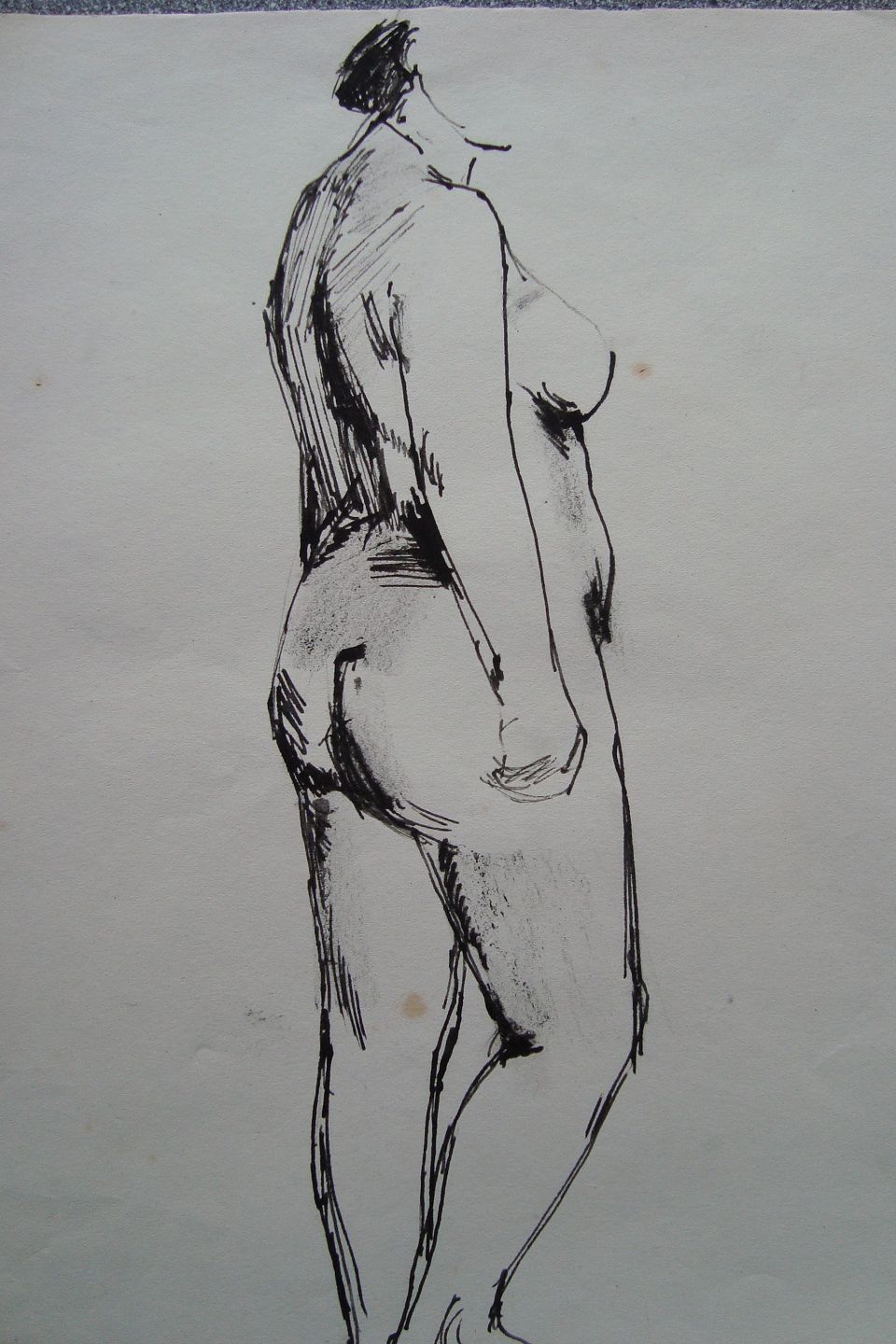 Tegning af Henry Nielsen - skitsebogsblad med nøgen kvindelig model 1927