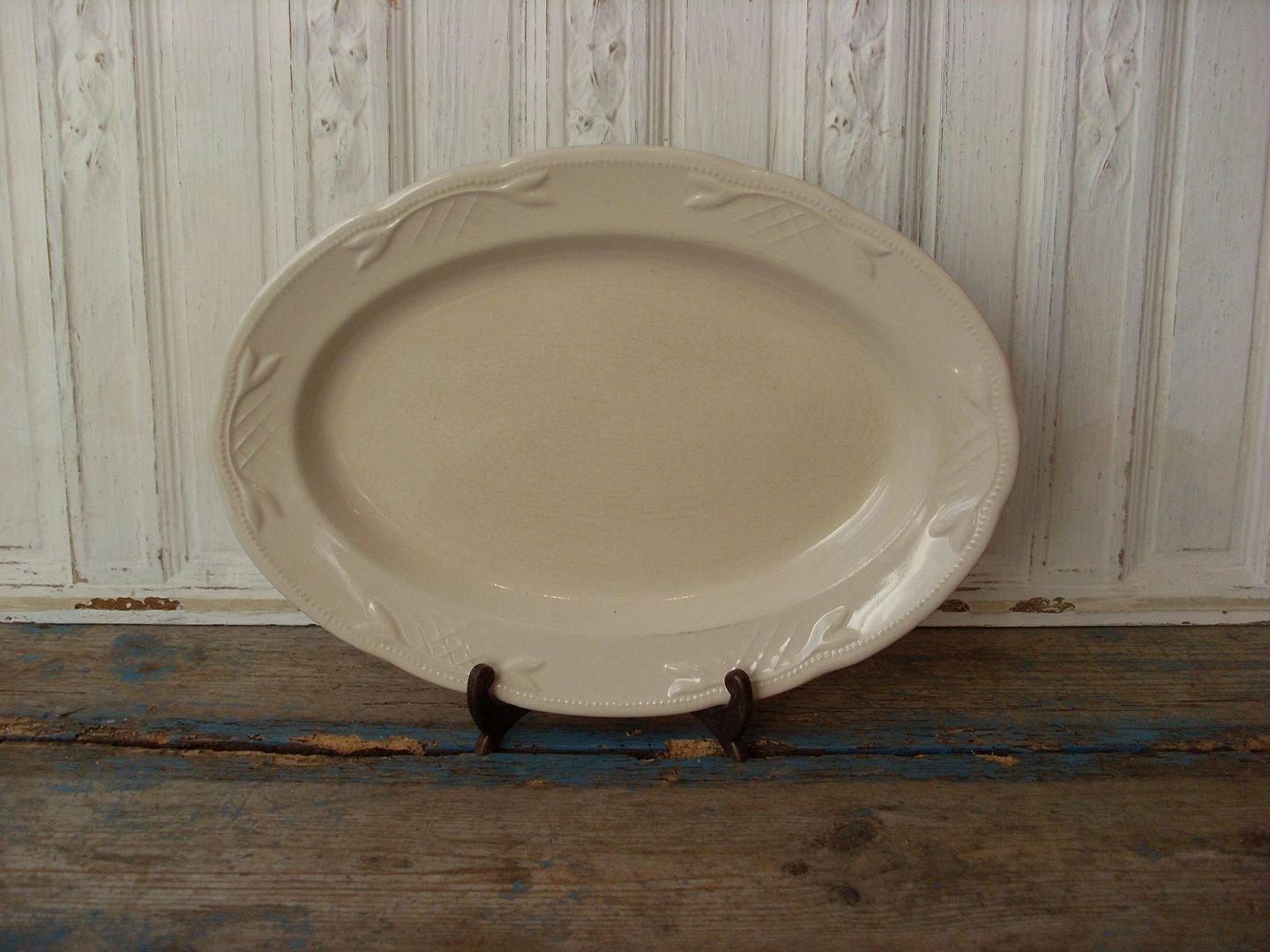 Smukt gammelt fajancefad med fin dekoration på kanten.