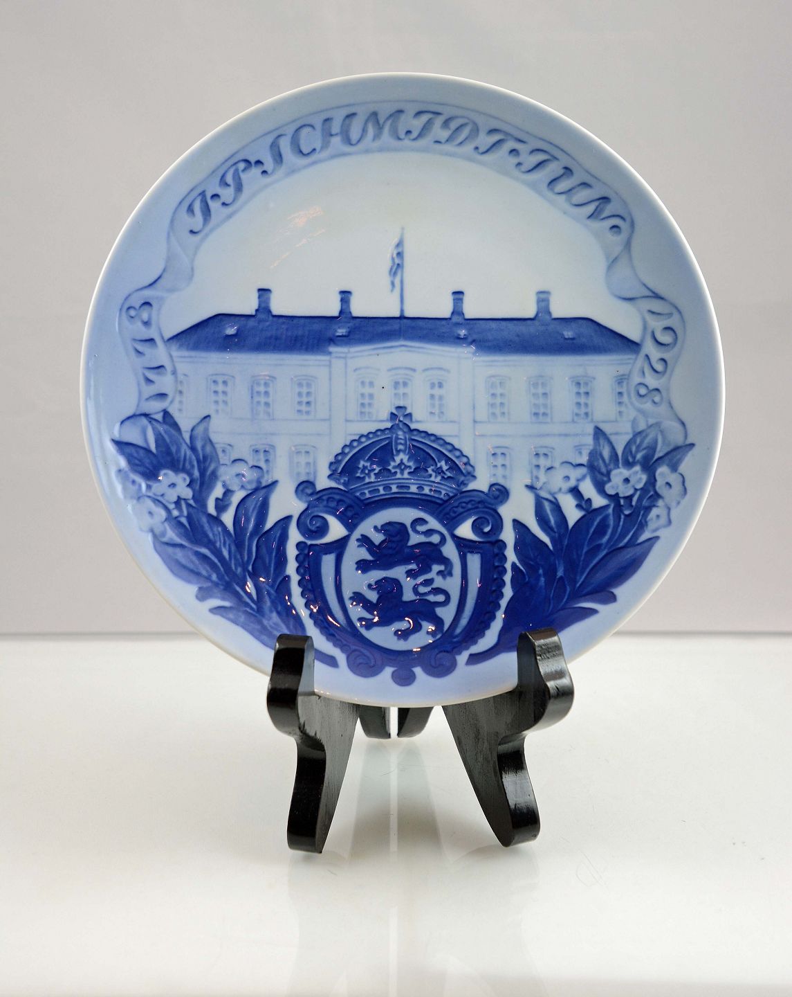 Kongelig vægplatte fra Royal Copenhagen. J. P. Schmidt 1778-1928, 150 års jubilæum. Intakt. 1. sort.