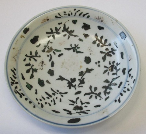 Chinese bowl. 17th century. Ming. Blådekoreret. With traces of gilding. Dia: 11 cm. H .: 2.2 cm.