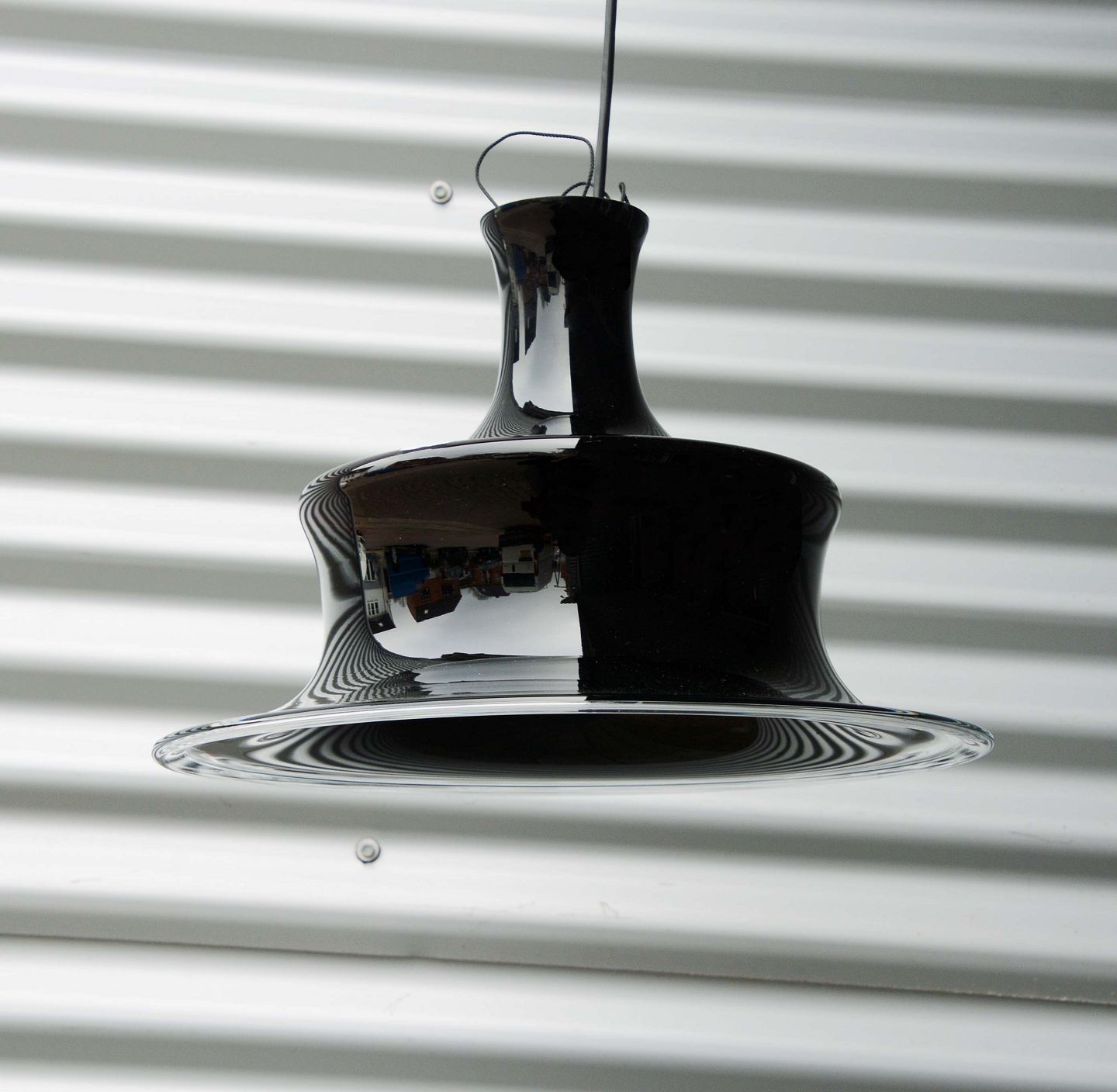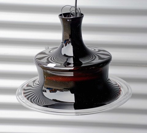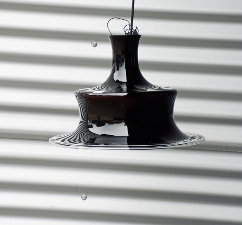 Loftslampe med glasskærm model aubergine Sonate fra Holmegaard. transparent glas i mørk lilla, som virker sort, når lyset er slukket.