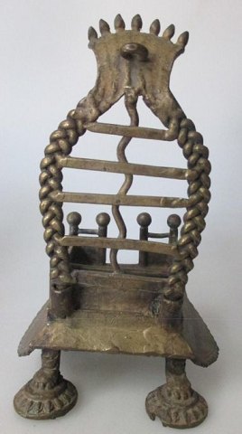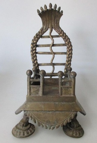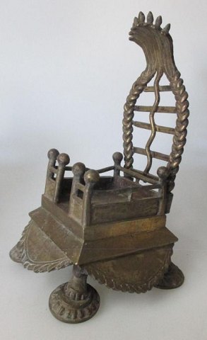 Indian bronze temple, Cire perdue, 19th century. Shaped like a throne. On 4 legs. H .: 18 cm.