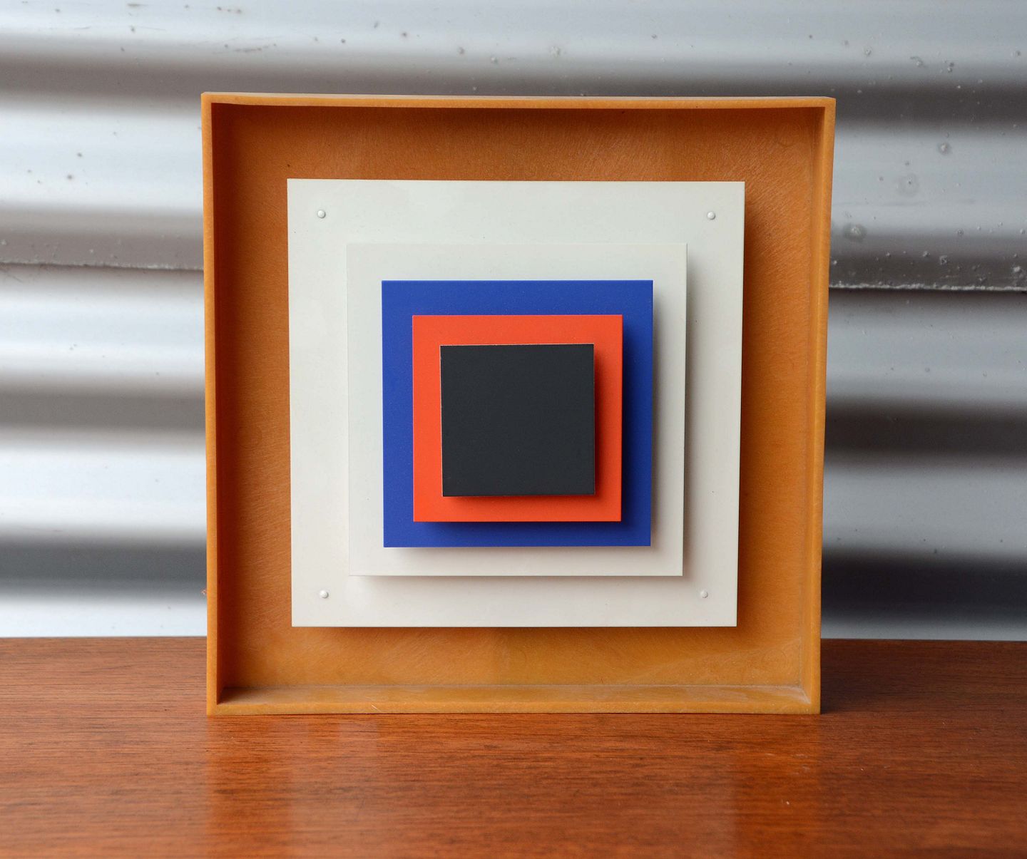 Væglampe kvadrille af Bent Karlby i gul, rød, blå og hvide farver.