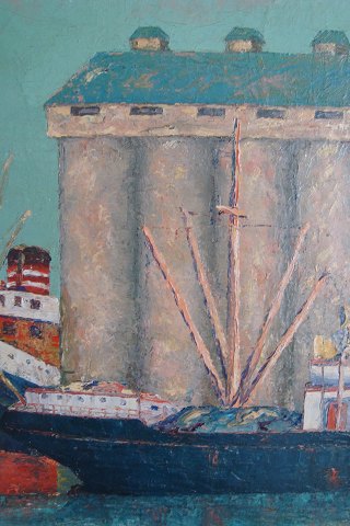 Havneparti fra industrihavn 1938 af Selmer Emmanuel Ammitzbøll Olsen.