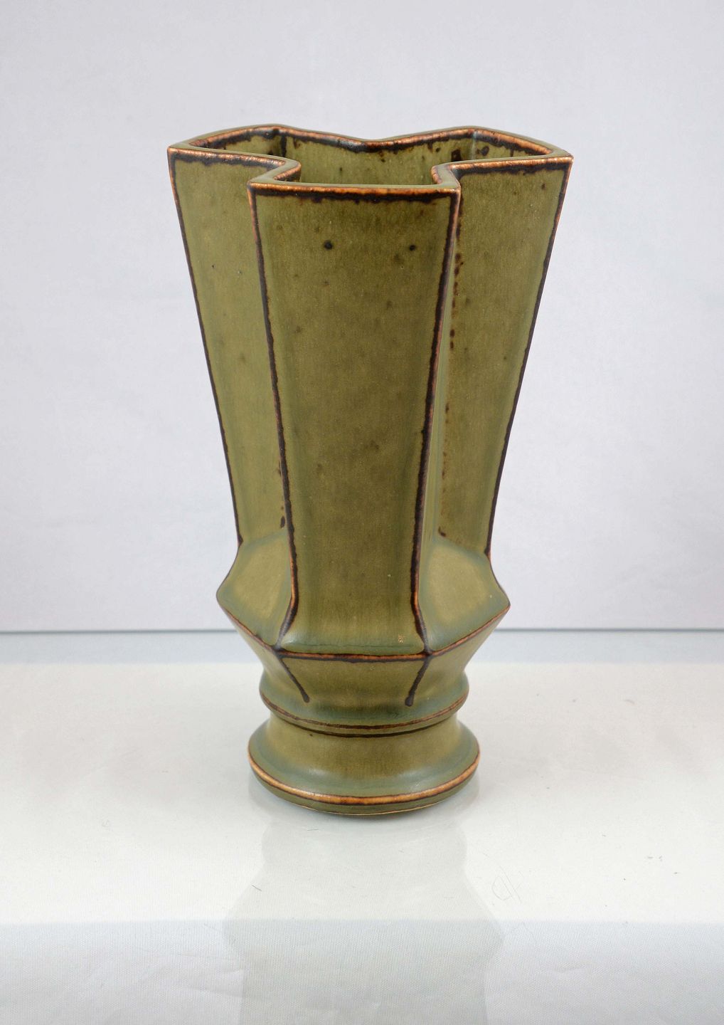 B&G kantet vase i stentøj 5819 af Lisa Engqvist for Bing og Grøndahl. 1. sortering