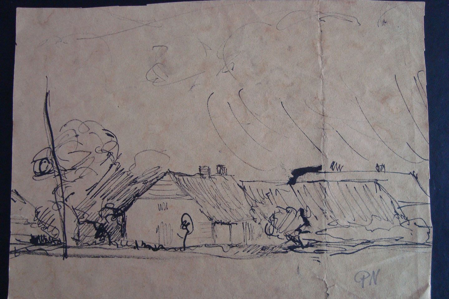 Tegningen er uden ramme of har en enkelt fold og rift.