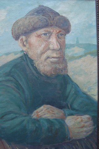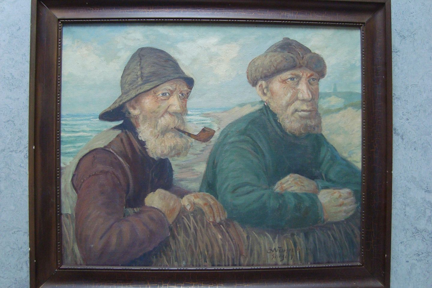 Maleri - E. Weinrich - 2 fiskere på Skagen.