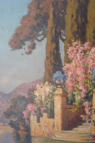 Smukt fransk maleri af Paul Bellanger-Adhémar - Sydlandsk landskab.