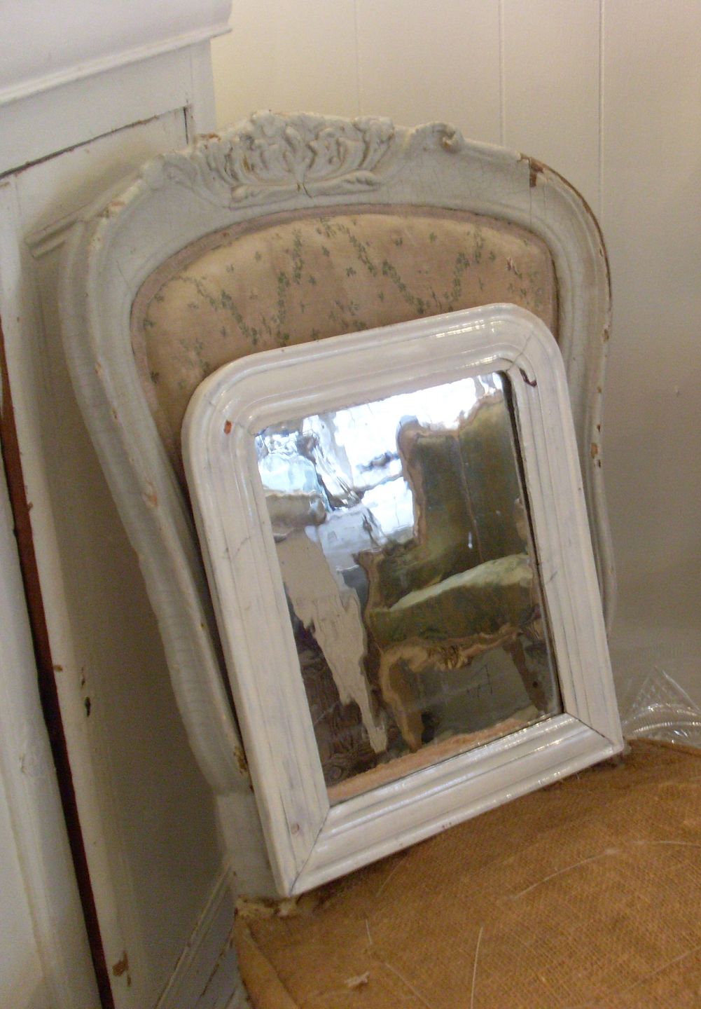 Perlemors hvid ramme med originalt spejlglas.