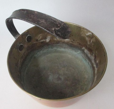 Bronze gryde, 18./19. årh. med jernhåndtag.