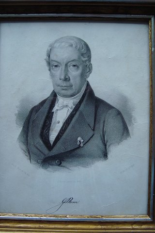 Litografi - Herreportræt efter maleri af Johannes Jensen 1847.
