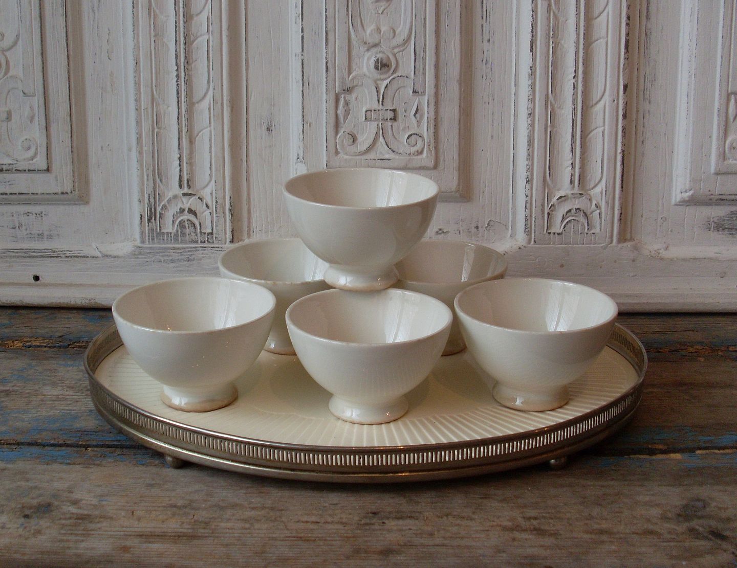 Cafe au lait skåle i cremefarvet fajance.