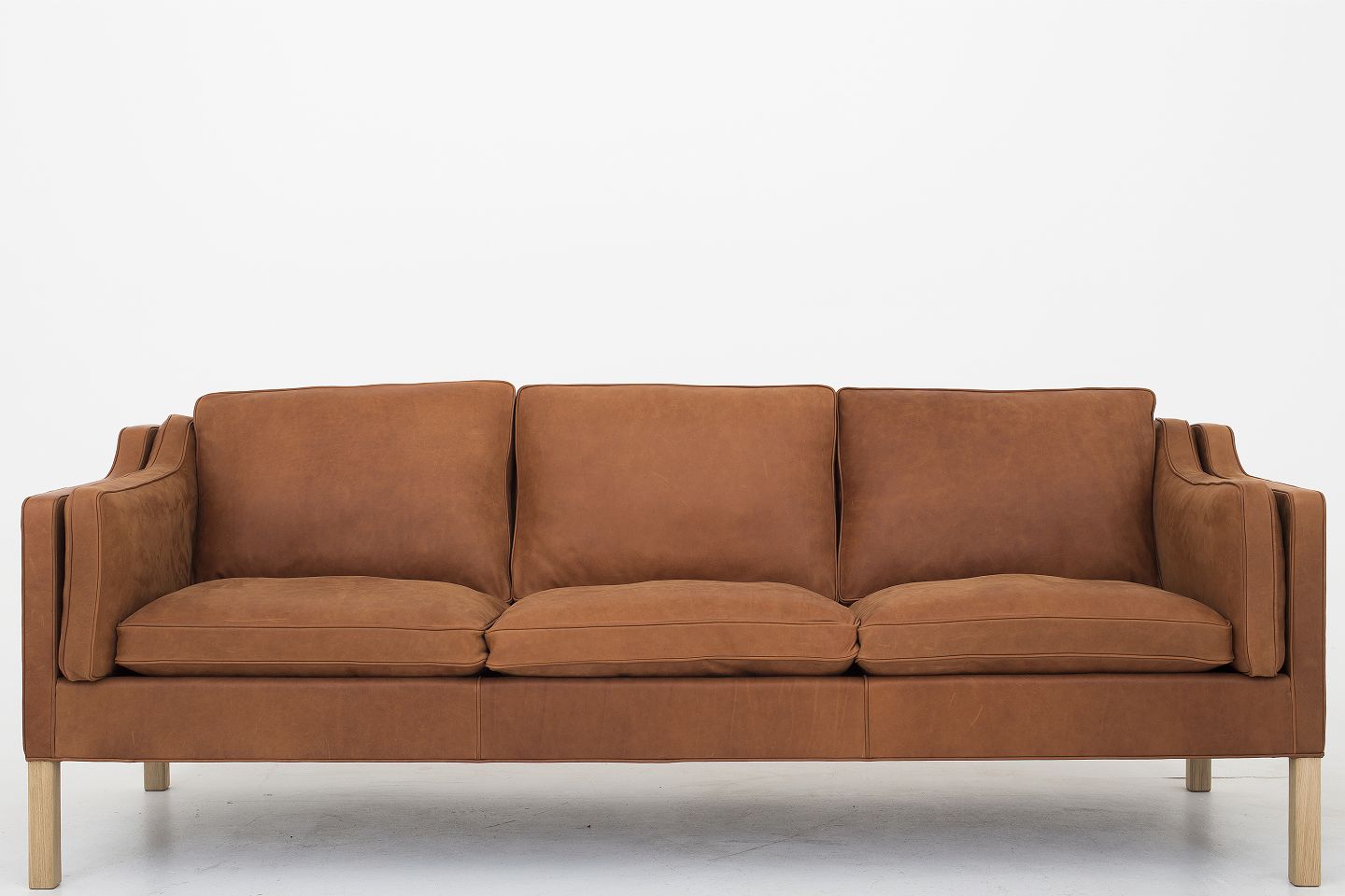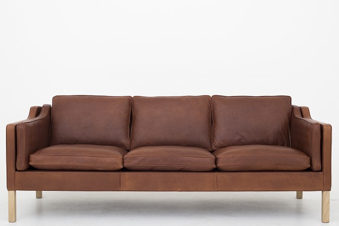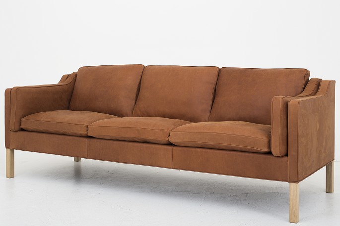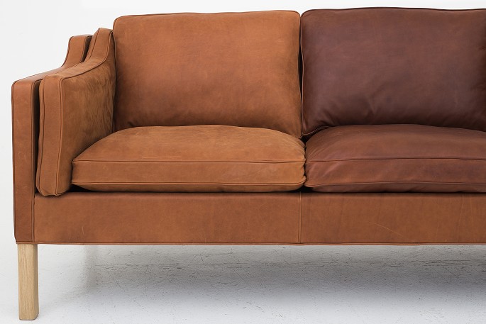 BM 2213 - 3 pers. sofa, nybetrukket i Dunes Cognac-læder og stel i eg.