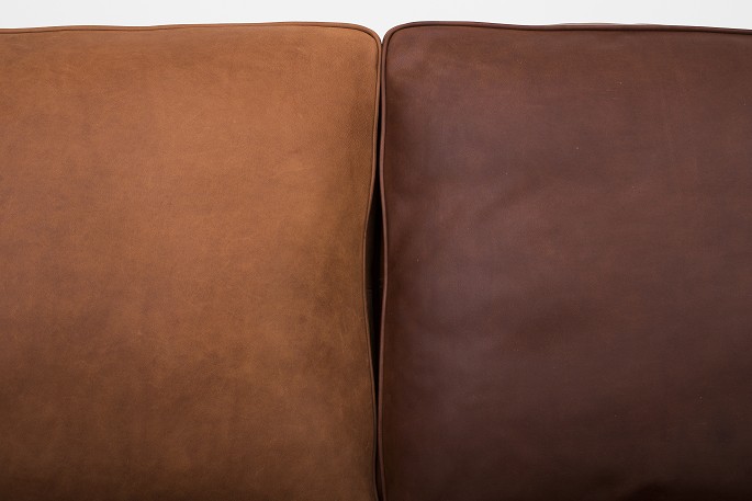 Bemærk, at læderet vises med og uden læderfedt på enkelte billeder. Vi tilbyder ompolstring af BM 2213 sofaen med stof eller læder efter eget valg.