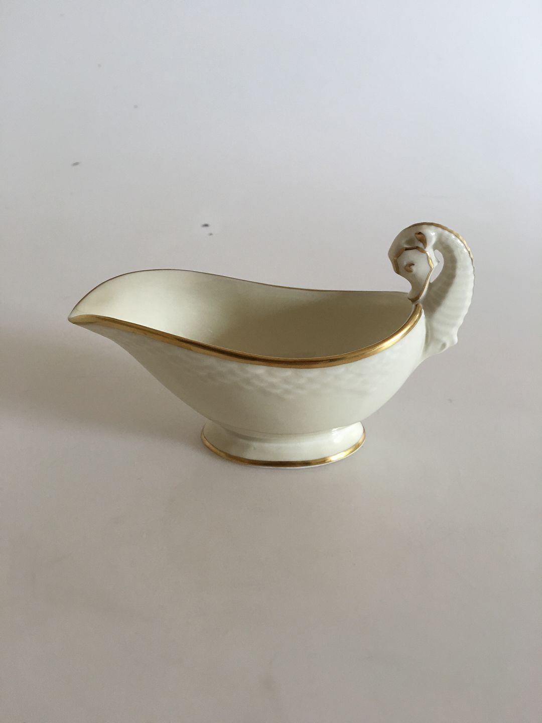 Bing & Grøndahl Aakjær Lille Smør Sauce Kande No 12. Creme med Guldkant. 5 x 16 cm. I fin stand