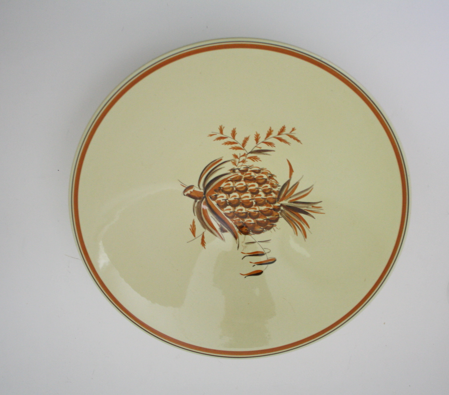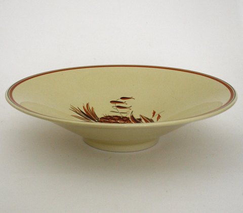 Aluminia, Frugtstellet Sybilla designet af Thorkild Olsen produceret fra 1934 til 1939. Frugtfad. Dek.nr. 1793/1453. Højde 8 cm. Diameter 32 cm. Flot stand. Pris: 575 kr.