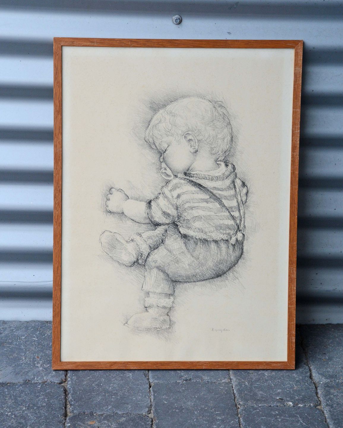 Indrammet tryk af Ib Spang Olsen med motiv af sovende dreng.