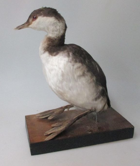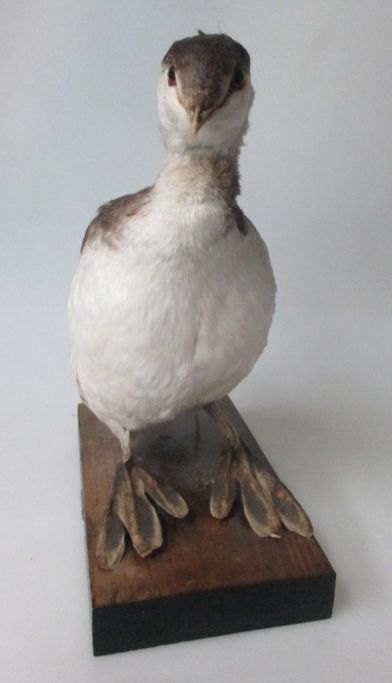 Udstoppet toppet lappedykker - unge - pódiceps cristàtus. Danmark.