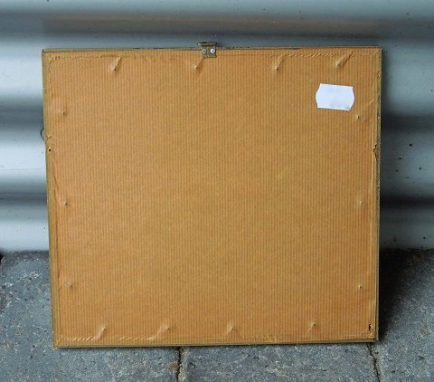 Indrammet radering med motiv af stuemiljø med mand og barn