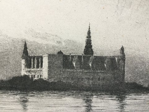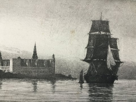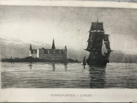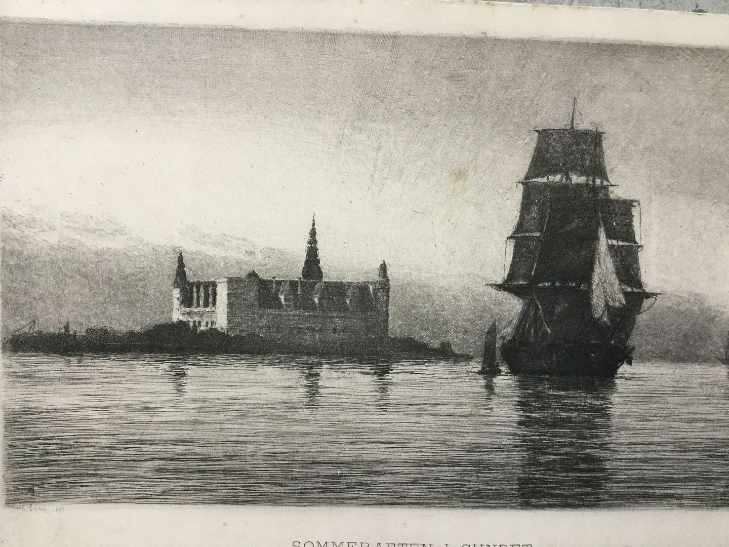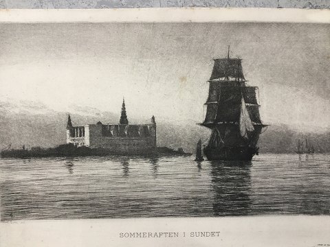 Radering af Carl Locher 1897 - Sommeraften i Sundet udfor Kronborg.