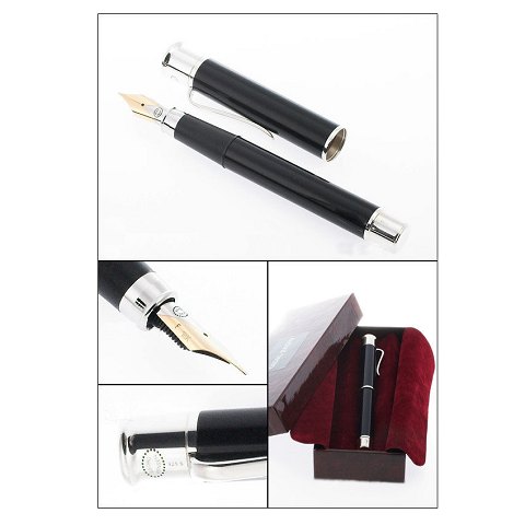 Georg Jensen Fyldepen i sterling sølv og sort lak, spids i 18 kt guld.