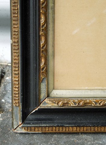 Fremstår med brugsspor på et enkelt glas og afslag på rammerne og slidt bagbeklædning. Sælges samlet