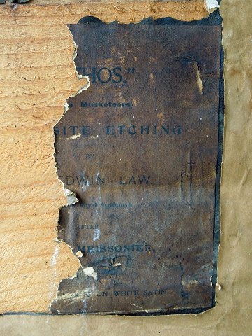 Et sæt på tre gamle indrammede franske tryk på satin. Den ene er med Athos fra de 3 musketer. Og Napoleon