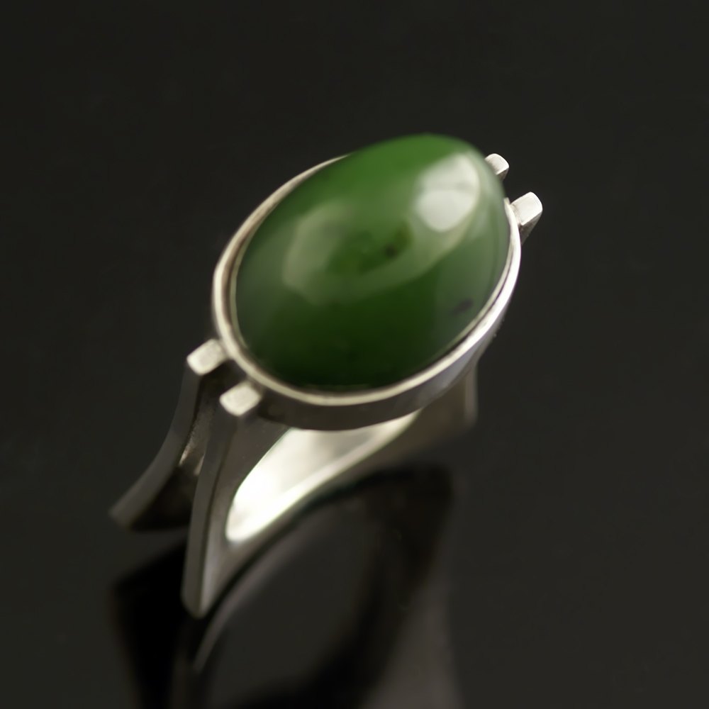 Andreas Mikkelsen. Ring i Sterling Sølv med Nephrit.