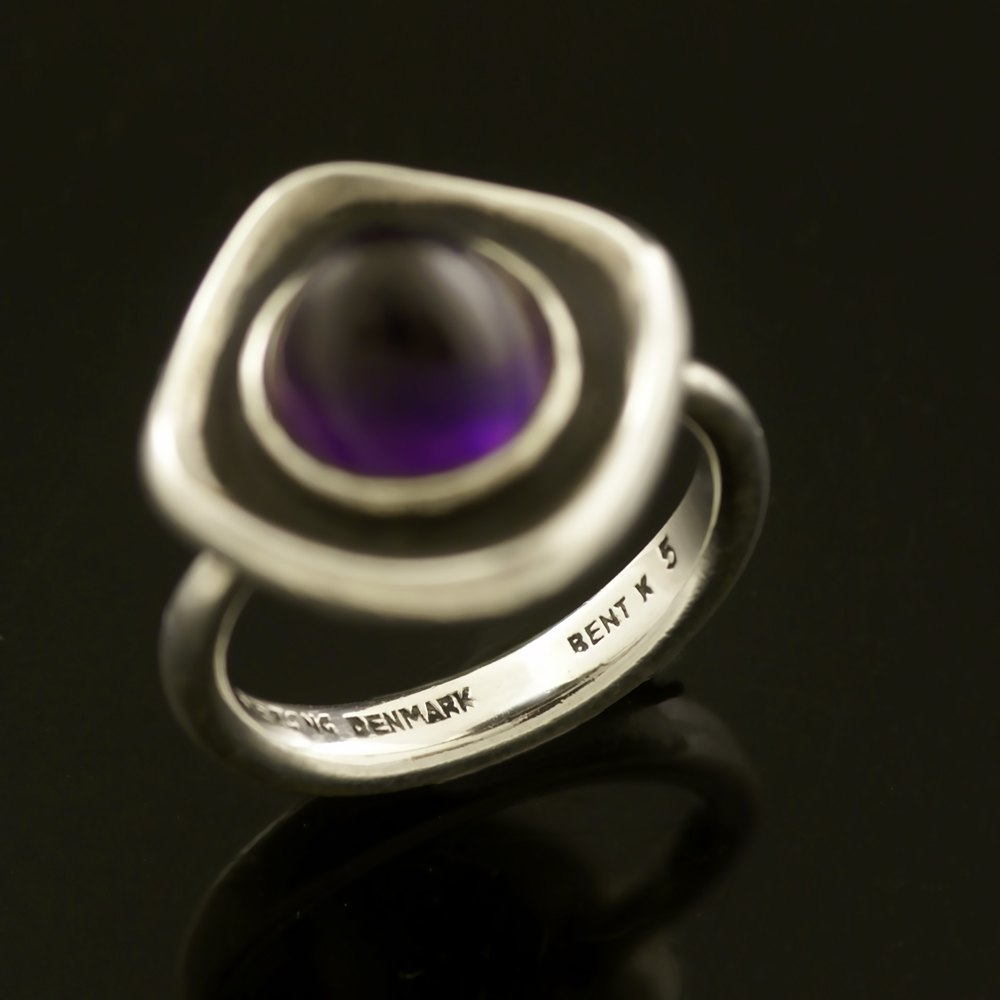 Bent Knudsen. Ring i Sterling Sølv med ametyst.