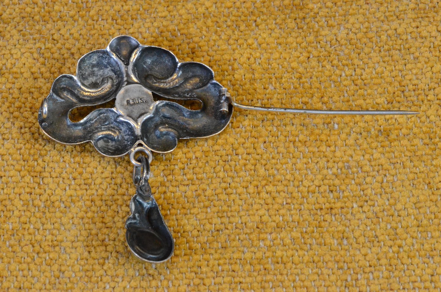 Broche, sølv og rav, skønvirke, stemplet "830s"