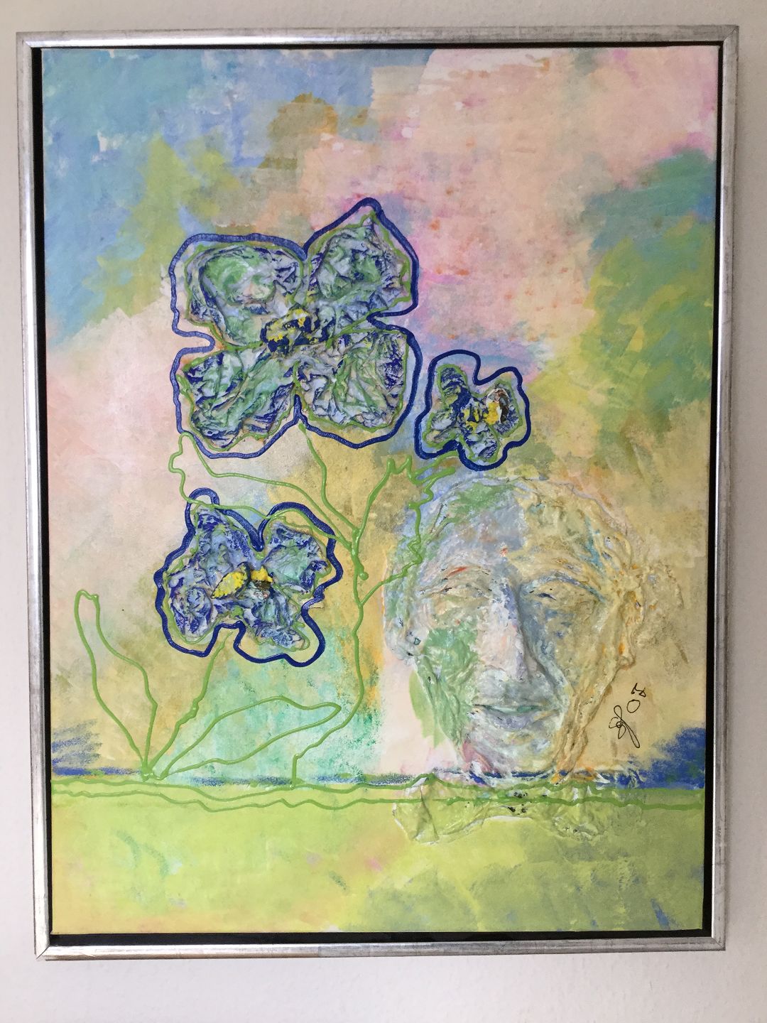 Indrammet i sølv svæveramme.