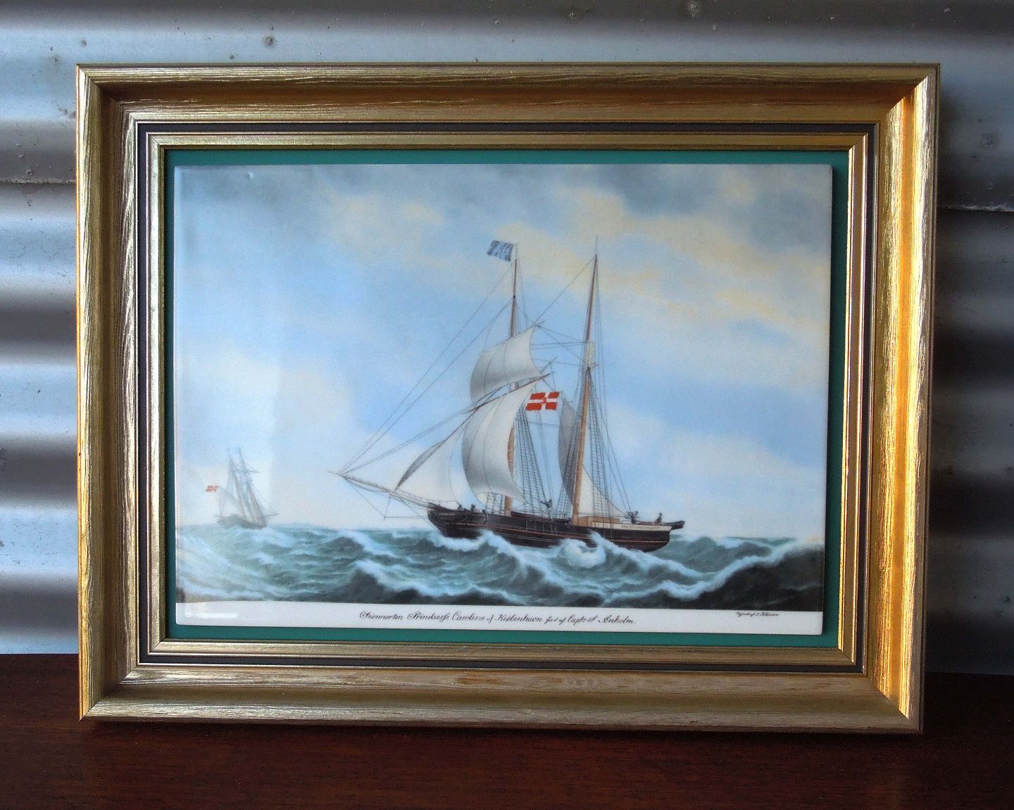 Dansk skibsportræt tegnet af Jacob Petersen 1774-1855. Reproduceret på Bing og Grøndahls porcelæn platte. Numereret 445/3500, porcelænsplade indrammet.
