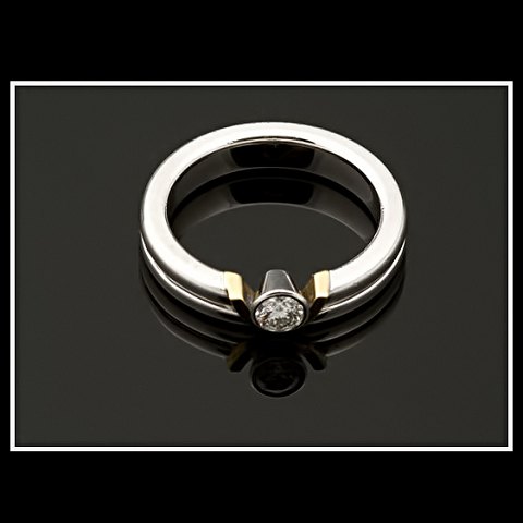 Georg Jensen Solitaire Ring i 18 kt guld & hvidguld med 0,20 ct diamant.
