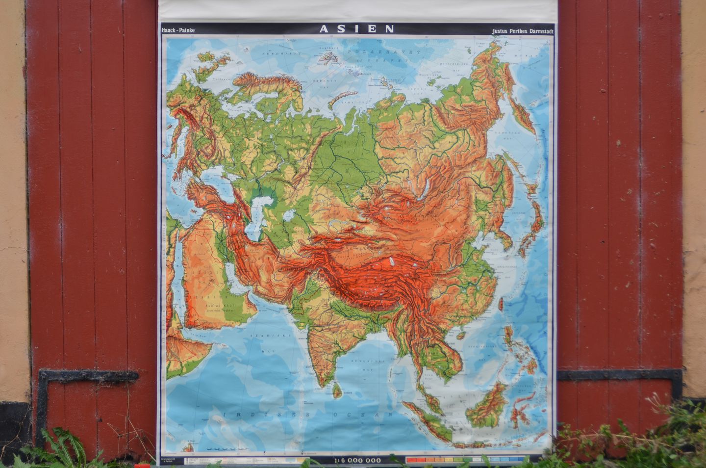 Skolekort: Asien, Monteret på selvruller og med forlænger, Kortmål: 190 x 170 cm, (Skolekort nr. 6)