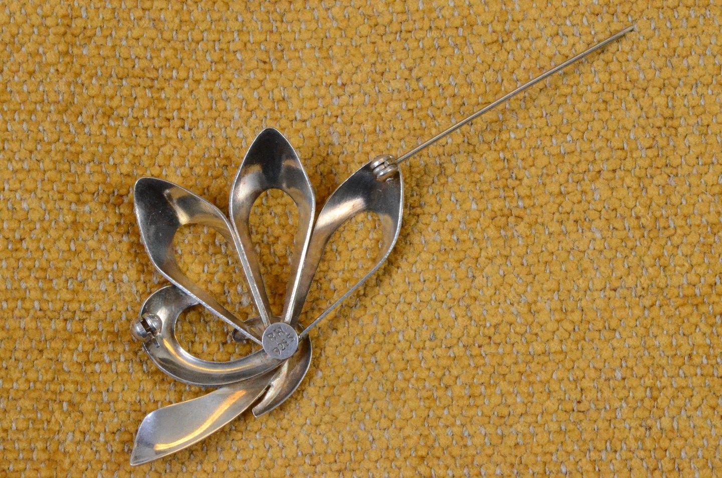 Broche af sølv, vintage design af 3-dimensionel bladmønster. Stemplet "BH" 925S. Str.: 6,8*3,5 cm. Art No.74