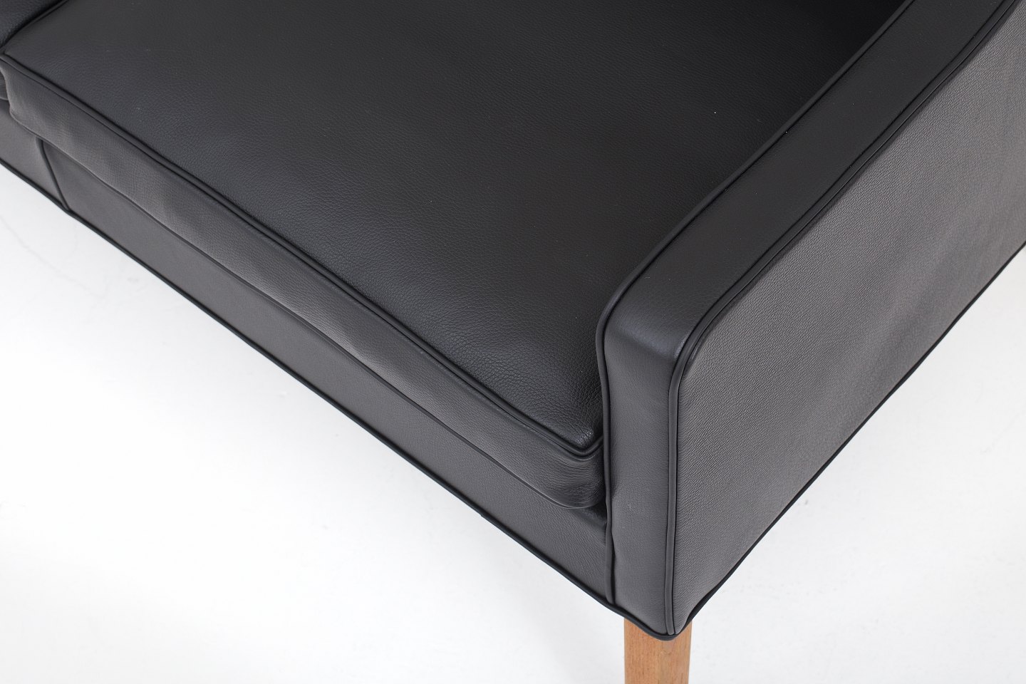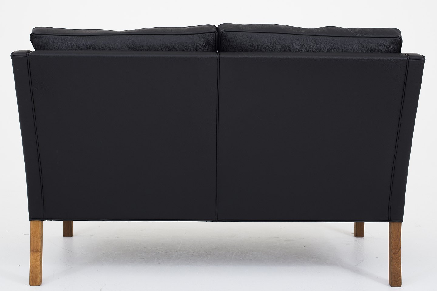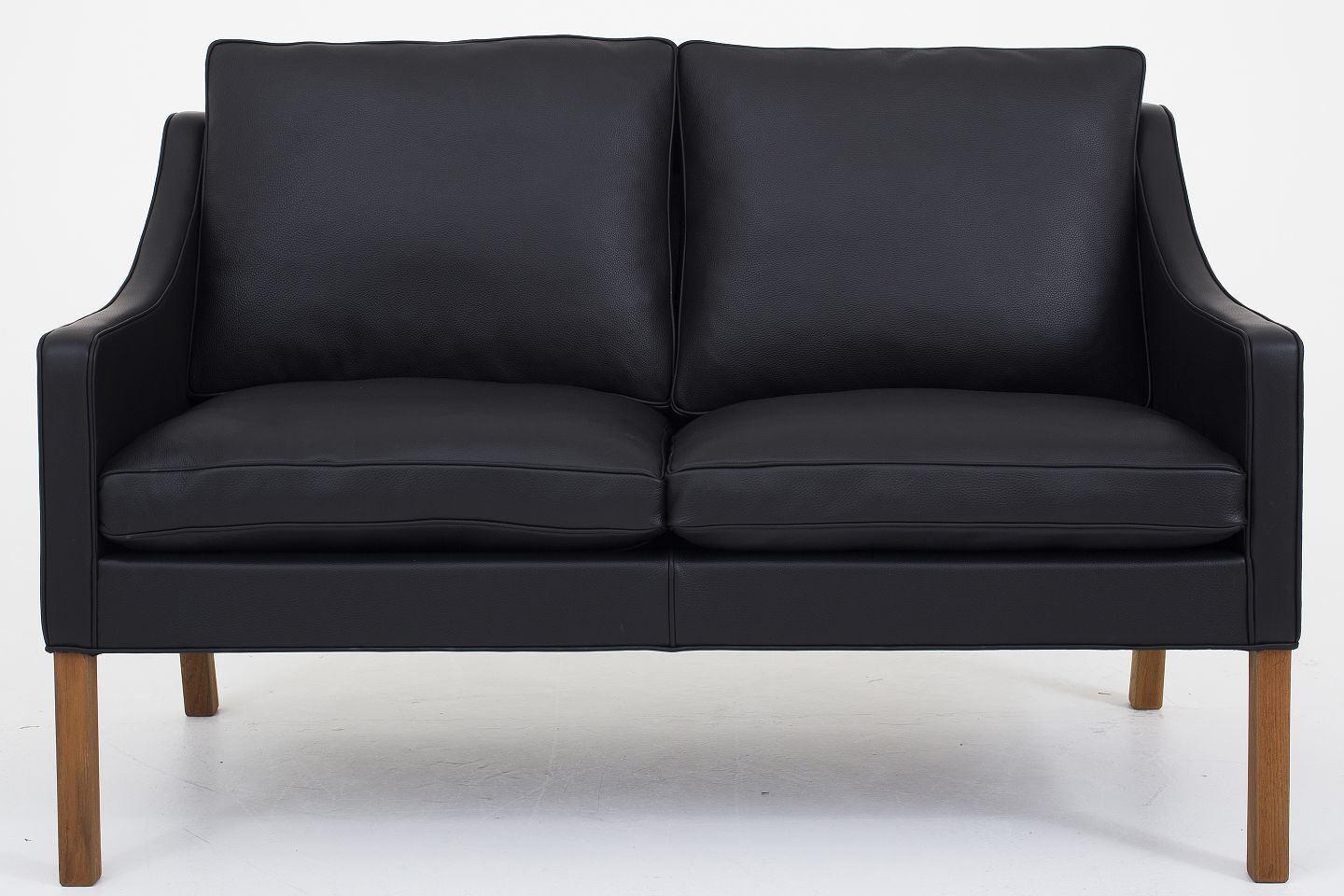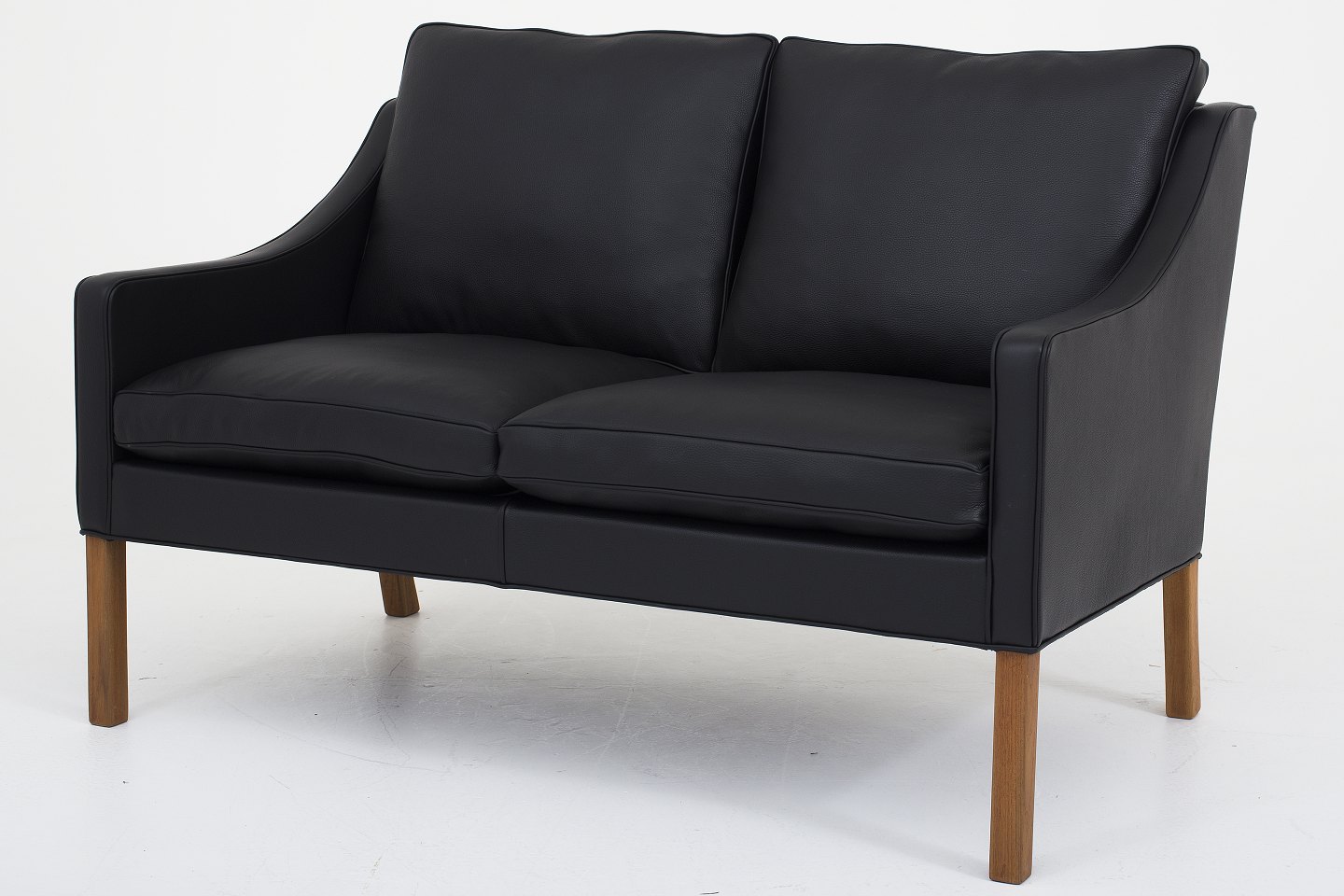 BM 2208 - Nybetrukket 2 pers. sofa i sort Klassik-læder med ben i mahogni. KLASSIK tilbyder polstring af sofaen med stof eller læder efter eget ønske.