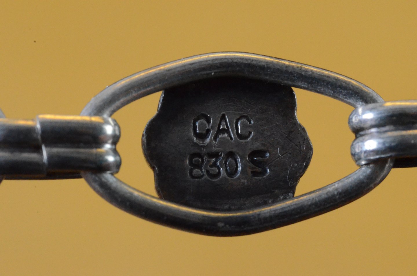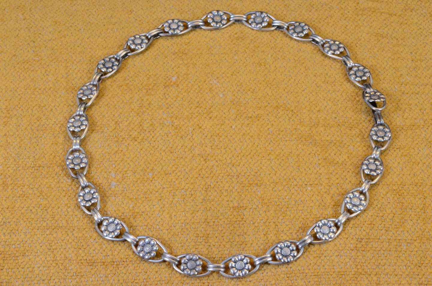 Collier necklace articulated in ovals attached silver flowers, assembled with double joints. Stamped 830S CAC. C.A.Christensen Eftf - Copenhagen Denmark 1937 - 1947. Sizes .: L: 46 cm H: 1 cm. Art nr 75