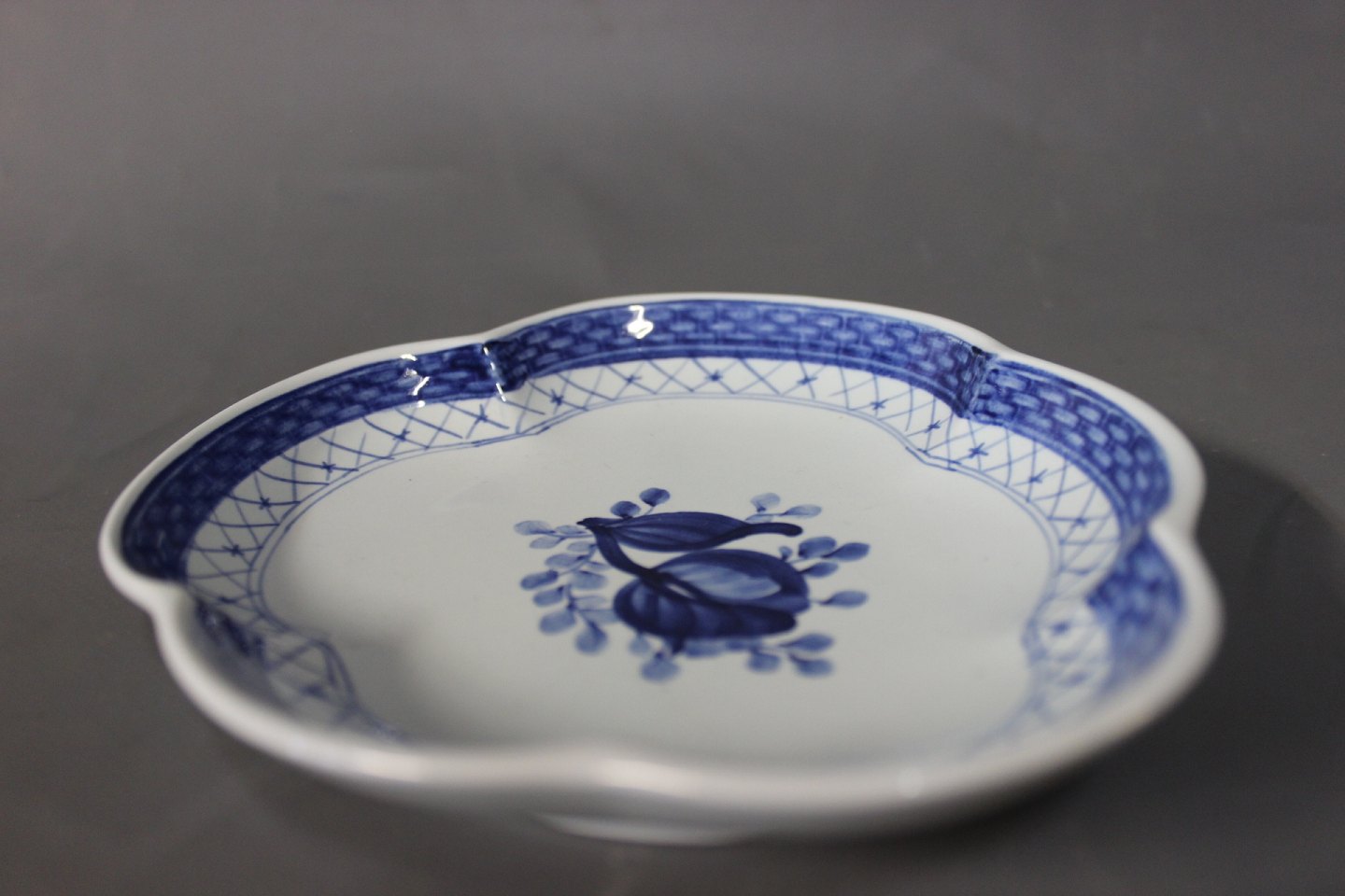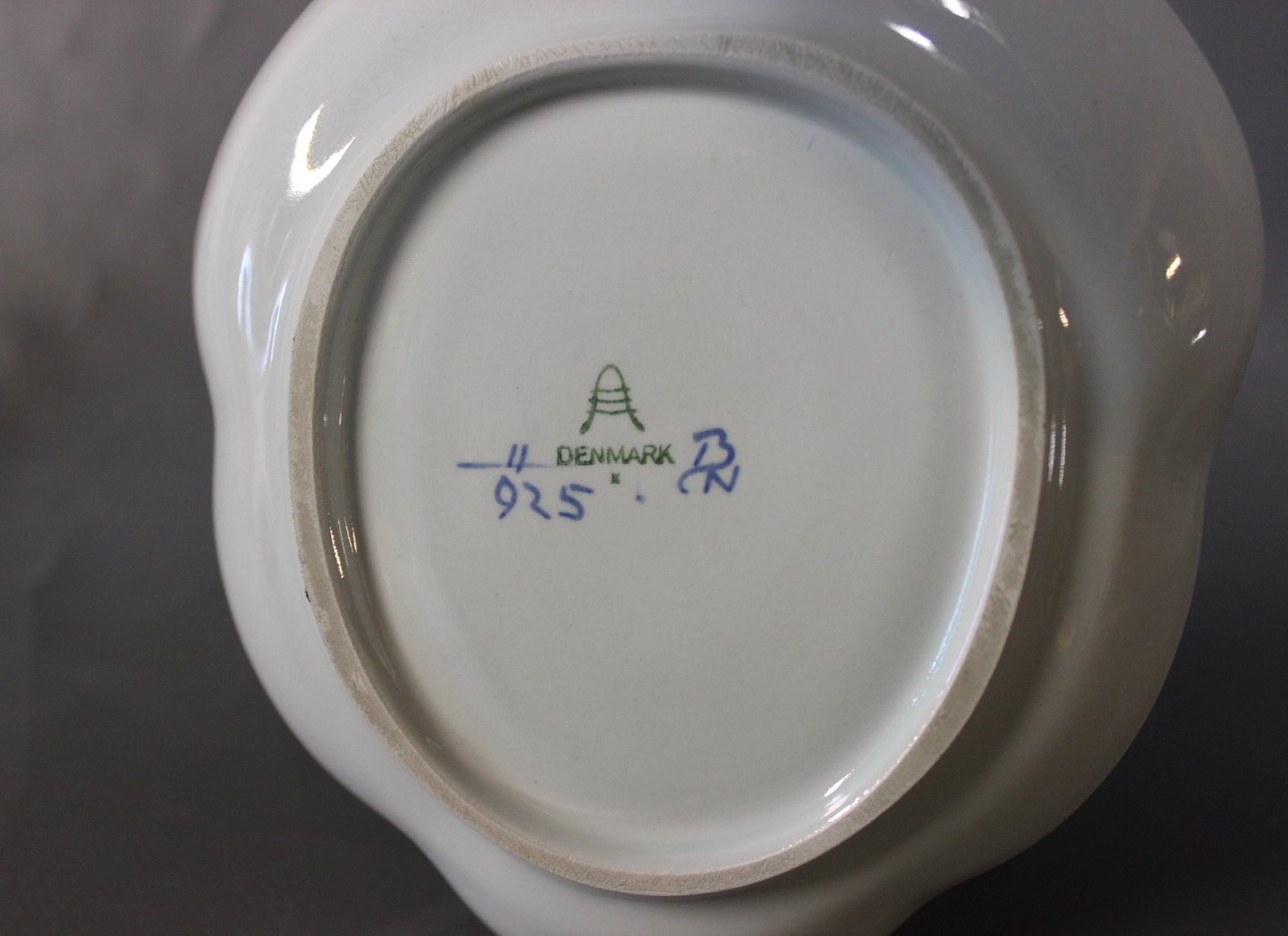Lille bladformet fad af Aluminia, #925.