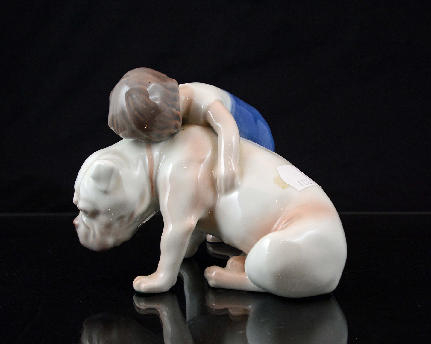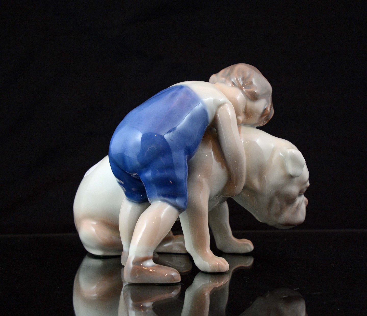 Dreng med bulldog (nr. 1790) af Michaela Ahlmann for Bing og Grøndahl. Figuren er i 1. sortering, Arkivfoto