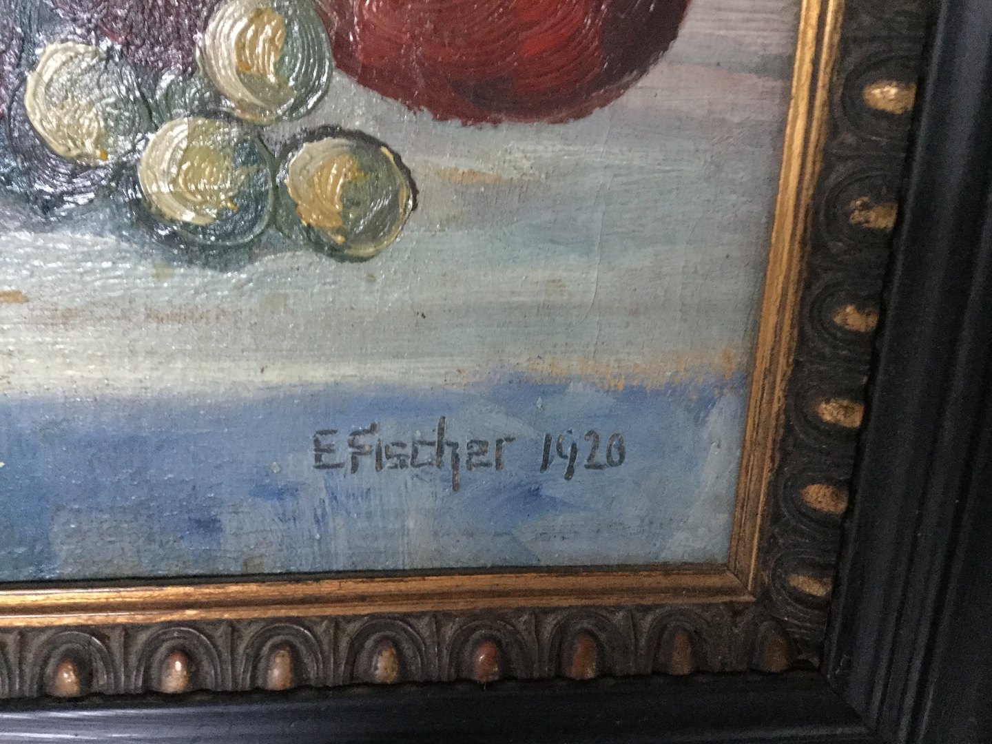 Maleri af Edmund Fischer - Opstilling med frugt på bord 1920.