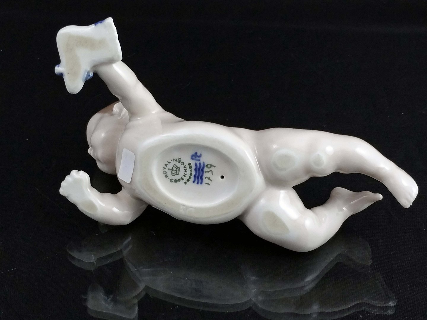 Kongelig Porcelænsfigur 'Kravlende baby`(nr. 1739) af Ada Bonfils for Royal Copenhagen.