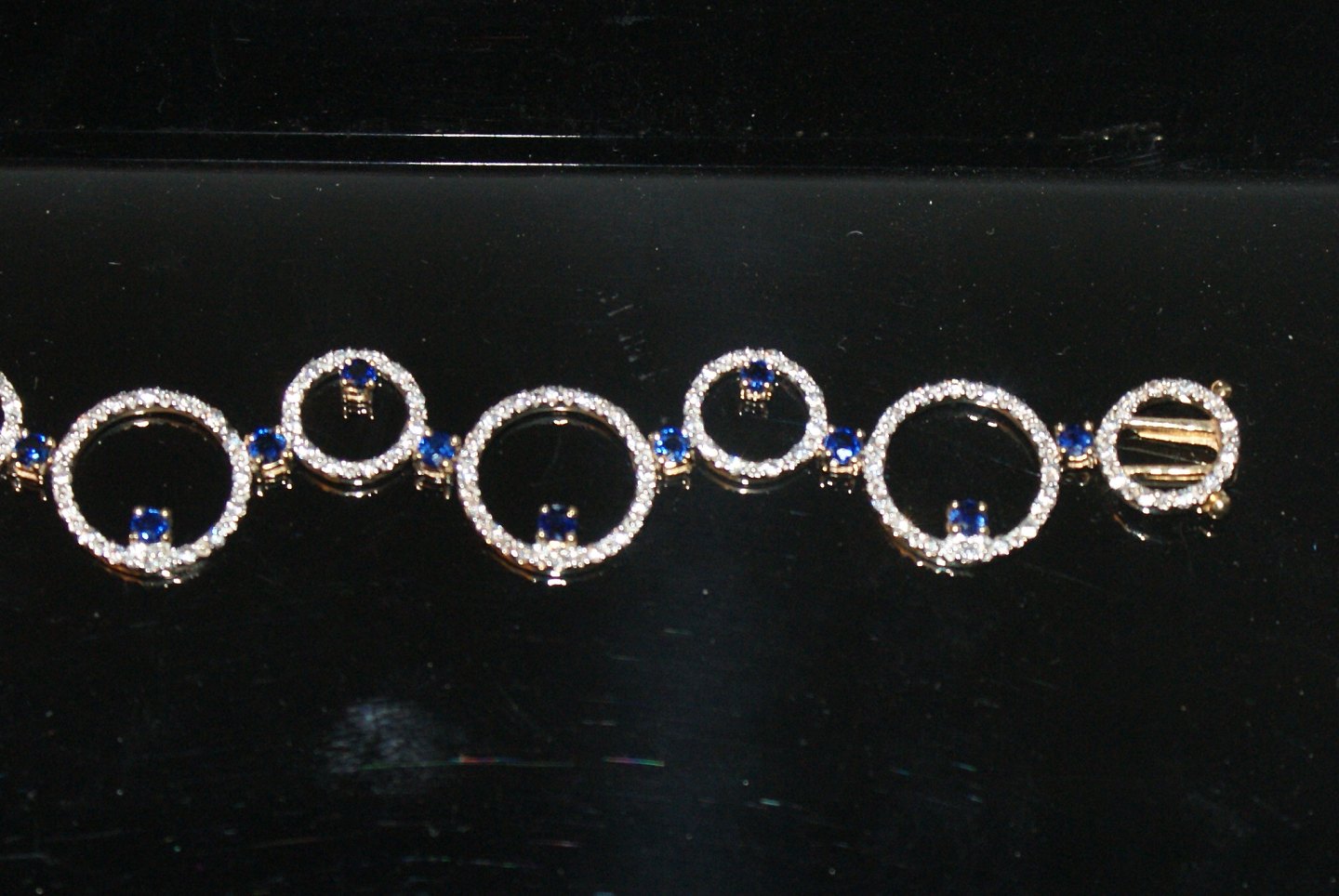 Unikt Armbånd 14 Karat Guld med blå/hvide safir