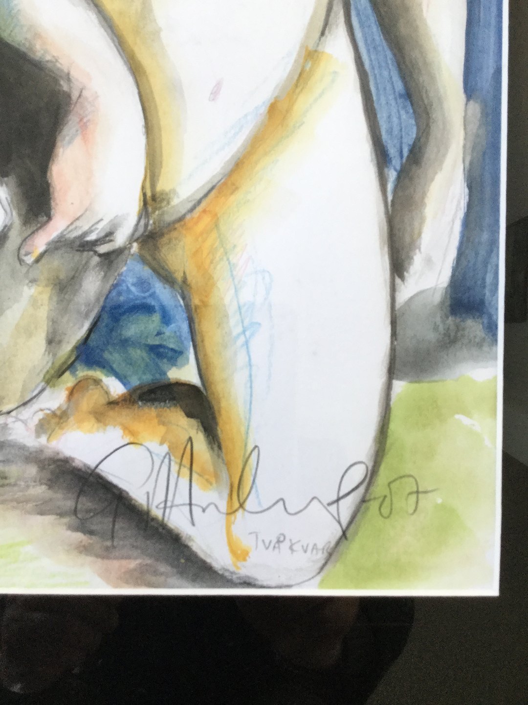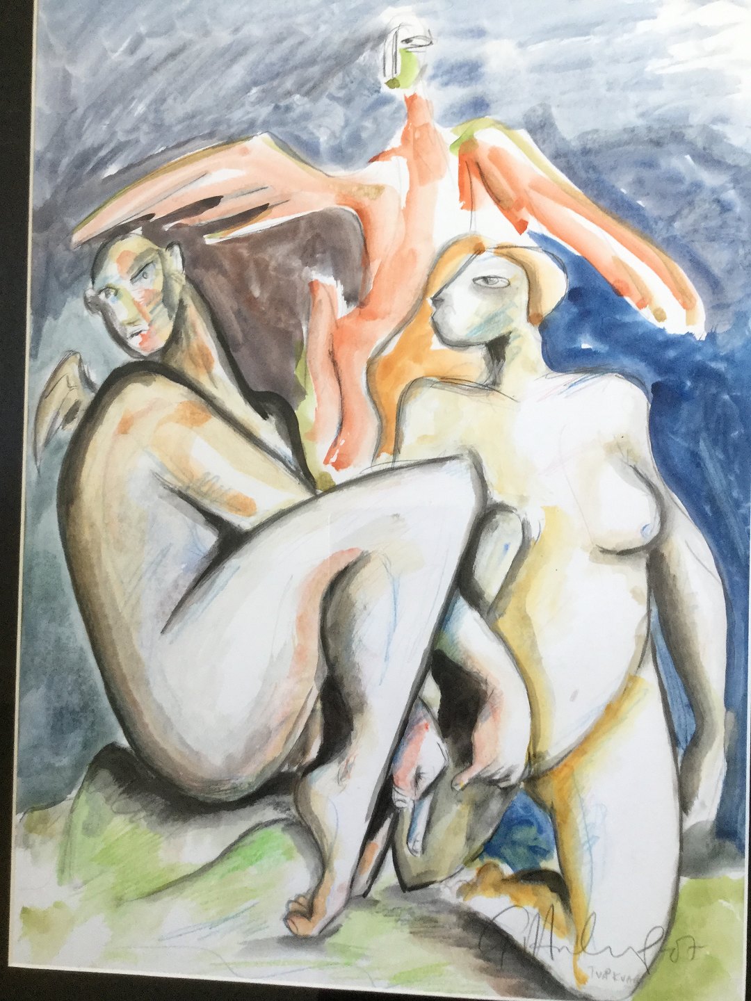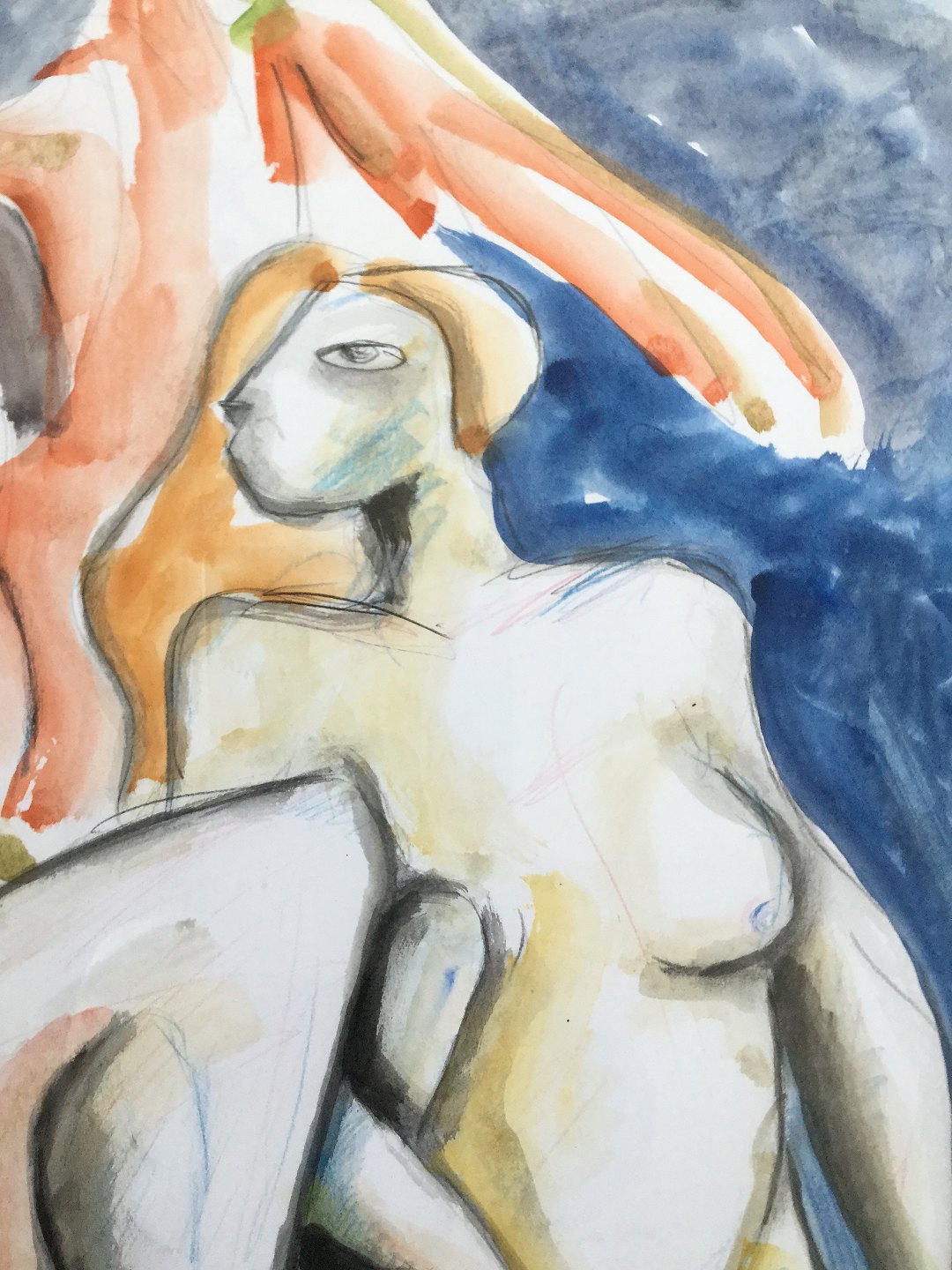 Akvarel af Göran Hausenkamp - 2 nøgne kvinder "Två kvar" 2007.