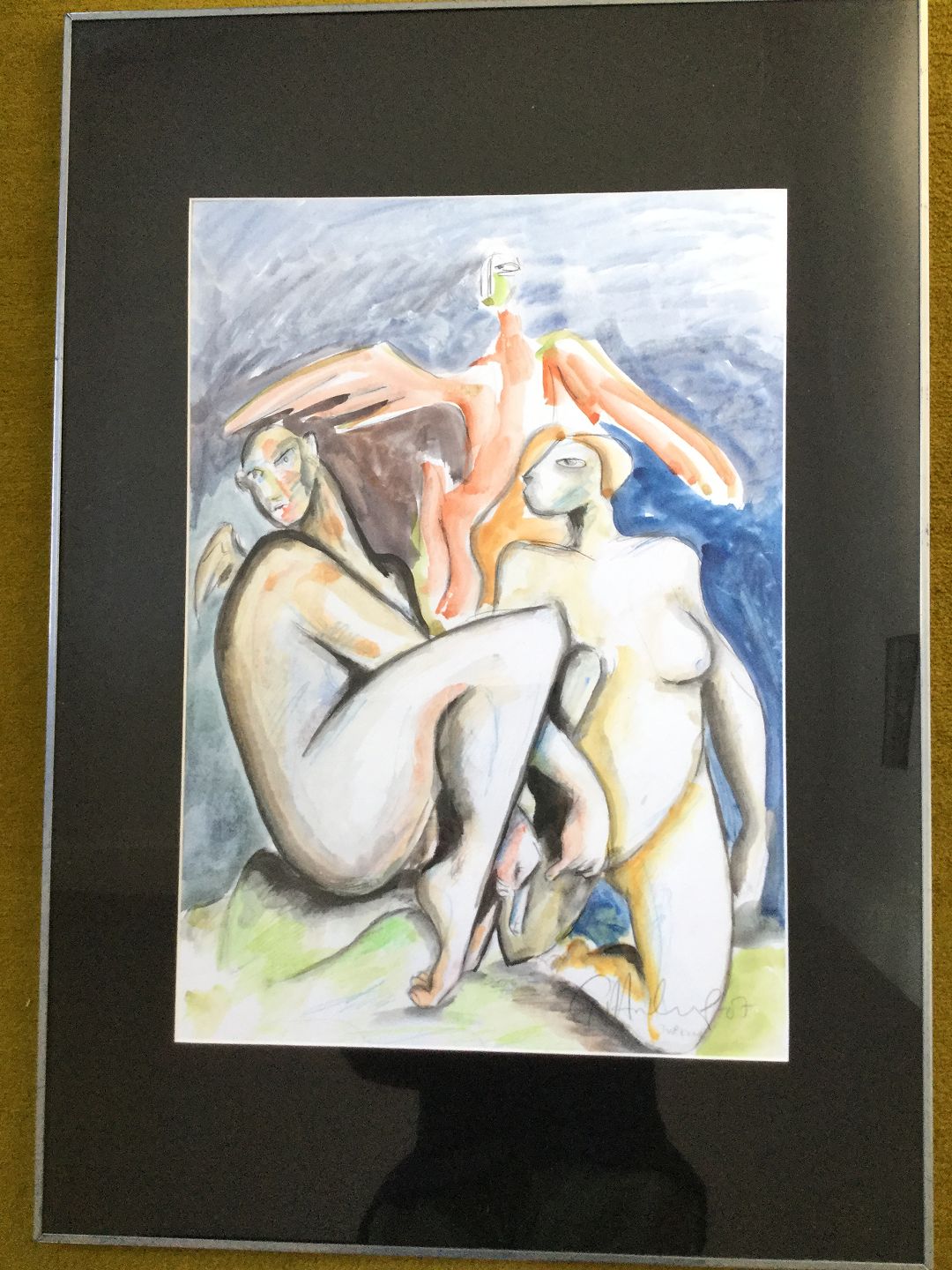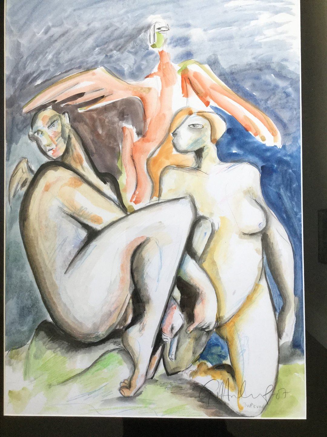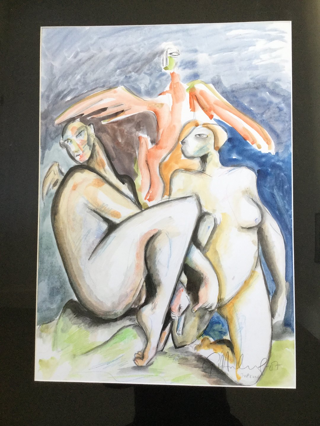 Akvarel af Göran Hausenkamp - 2 nøgne kvinder "Två kvar" 2007.