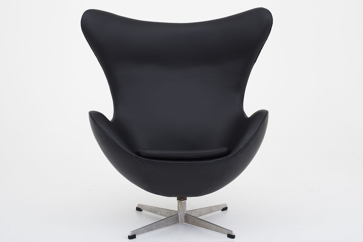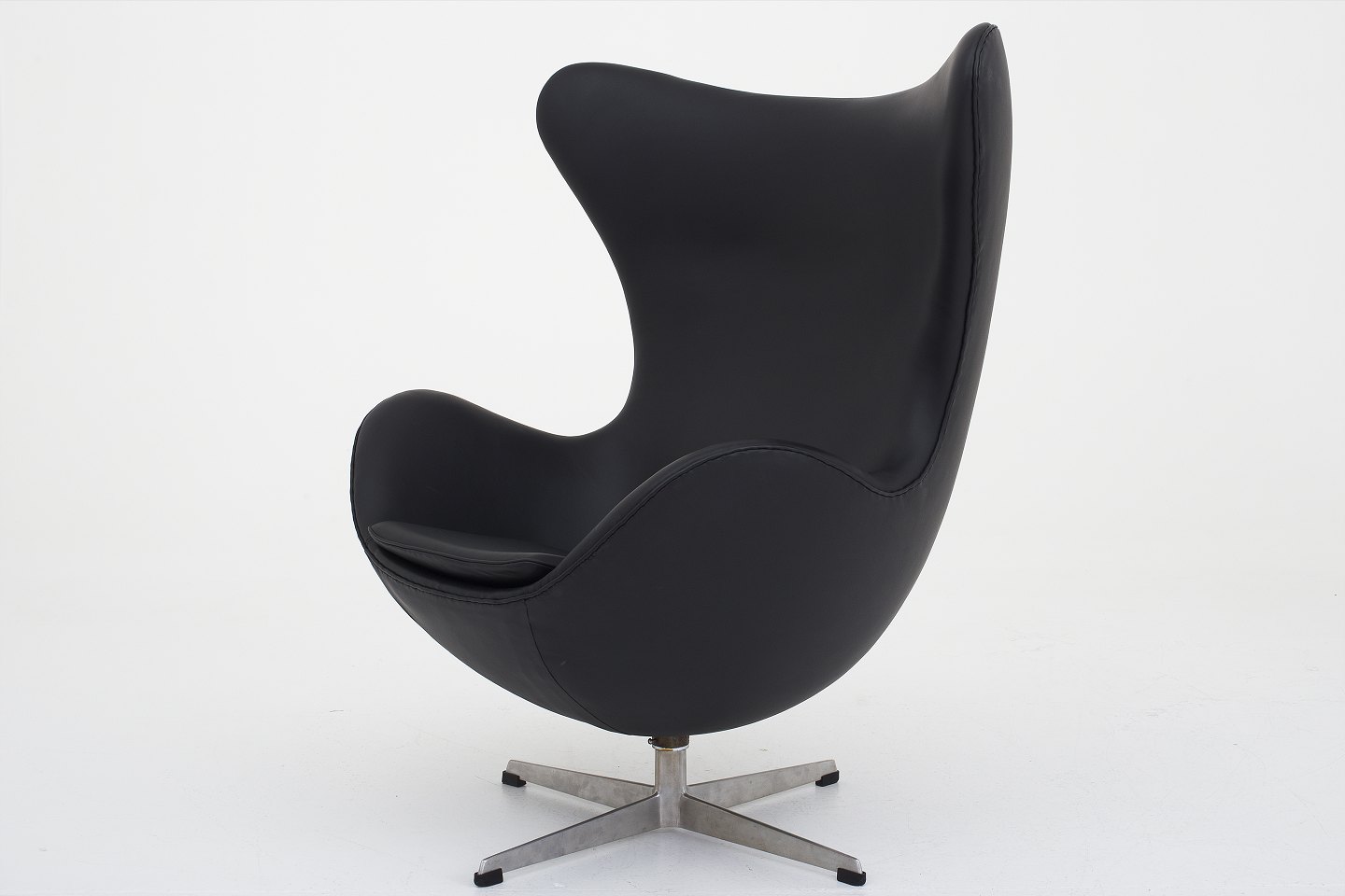 AJ 3316 - Nybetrukket "Ægget" i sort KLASSIK-læder med gammel fod