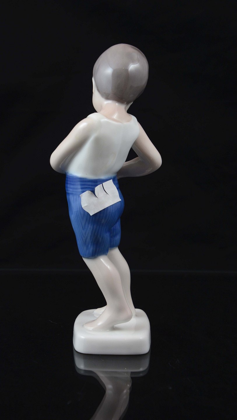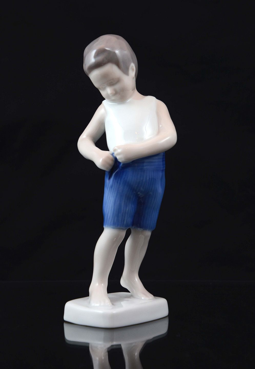 B&G figur Tiny Tot (nr. 1759) dreng med blå bukser. Designet af Michaela Ahlmann for Bing og Grøndahl.