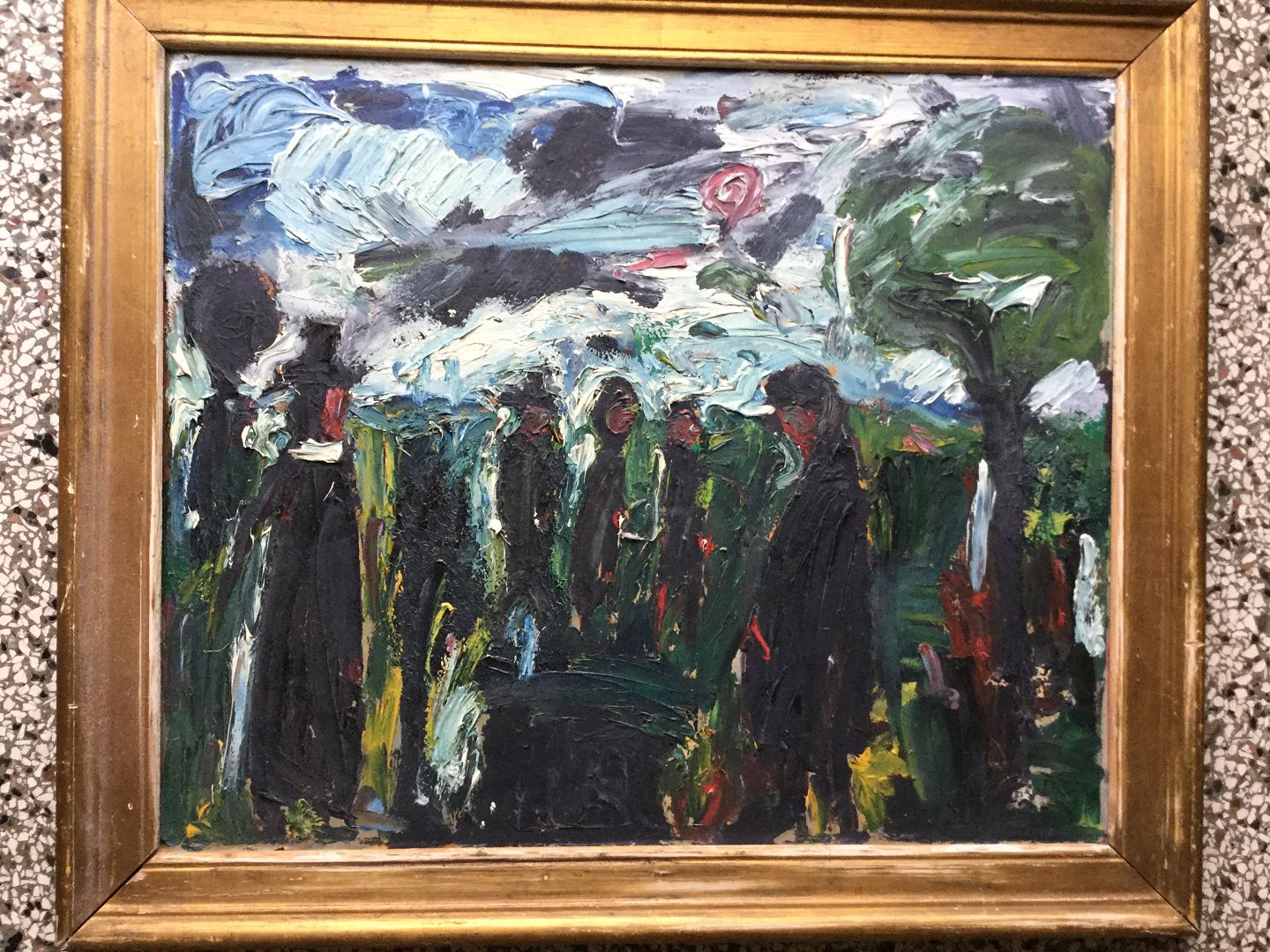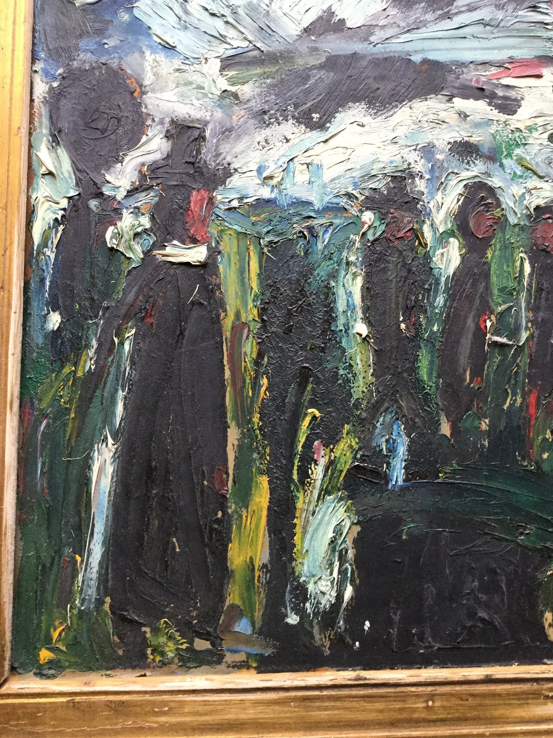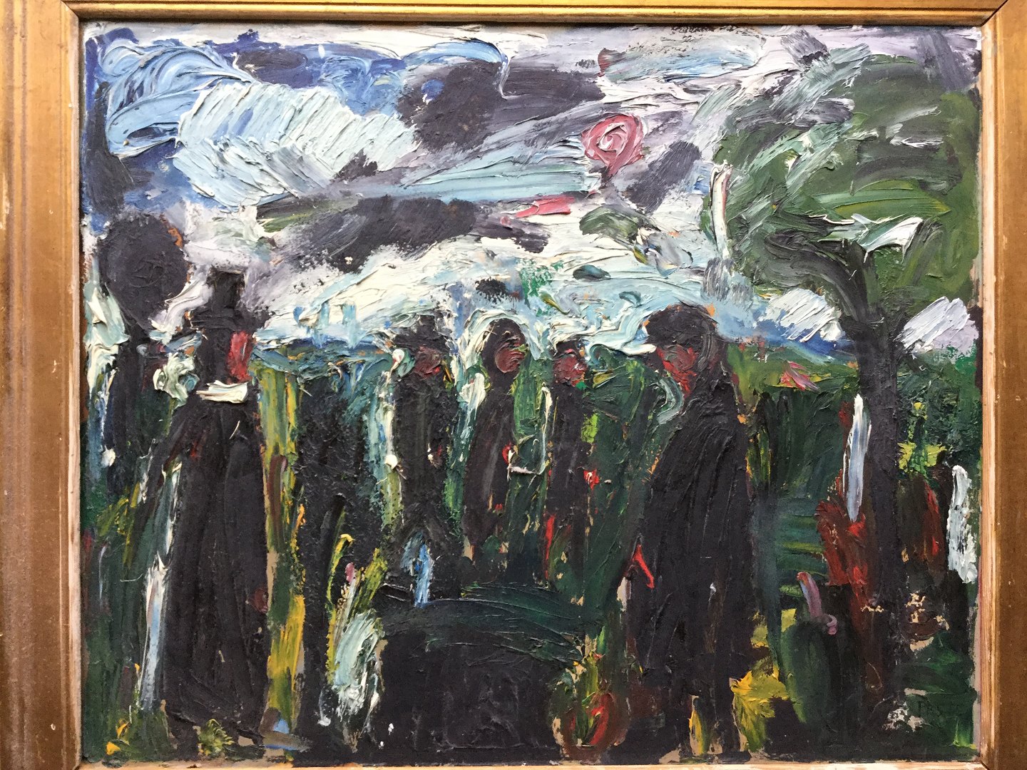 Maleri af Peder Brøndum Sørensen - Begravelsesfølget med præsten 1955.