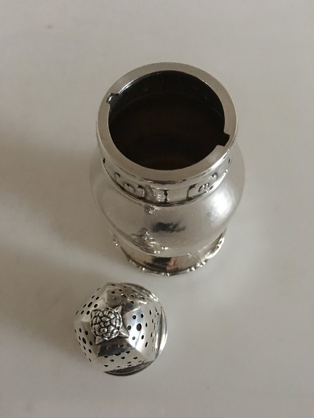 Georg Jensen Sølv Sukker Stråbøsse i Art Nouveau Stil 1904-1910. 16 cm Høj. Tilter en lille smule men ellers fin stand alderen taget i betragtning. Vejer 138 gram.