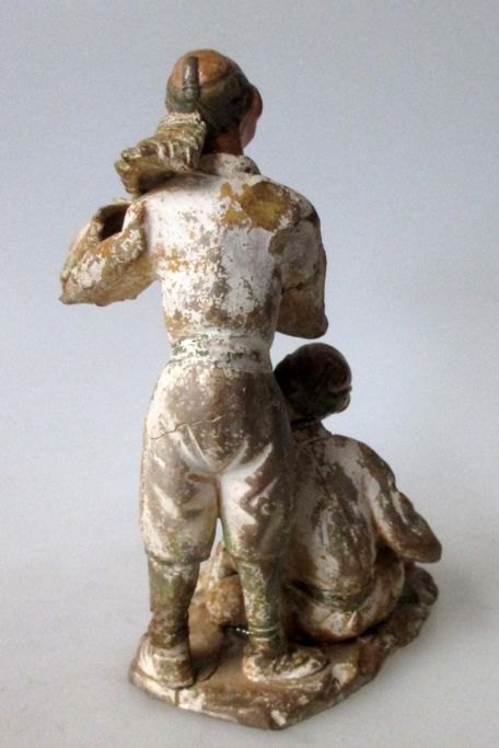 Tre japanske figurer i bemalet gips, 19. årh.