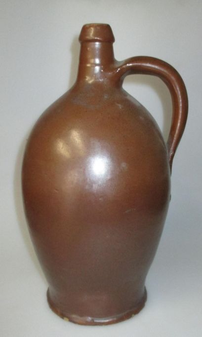 Antik brændevins dunk, 19. årh. Brun saltglasur. Slesvig/Holsten. Med hank. H: 28 cm.